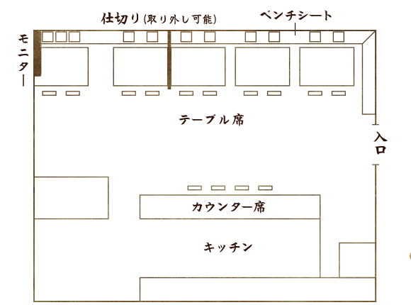 お一人様でも楽しめるカウンター席が ありますので、気軽にお立ち寄りください。